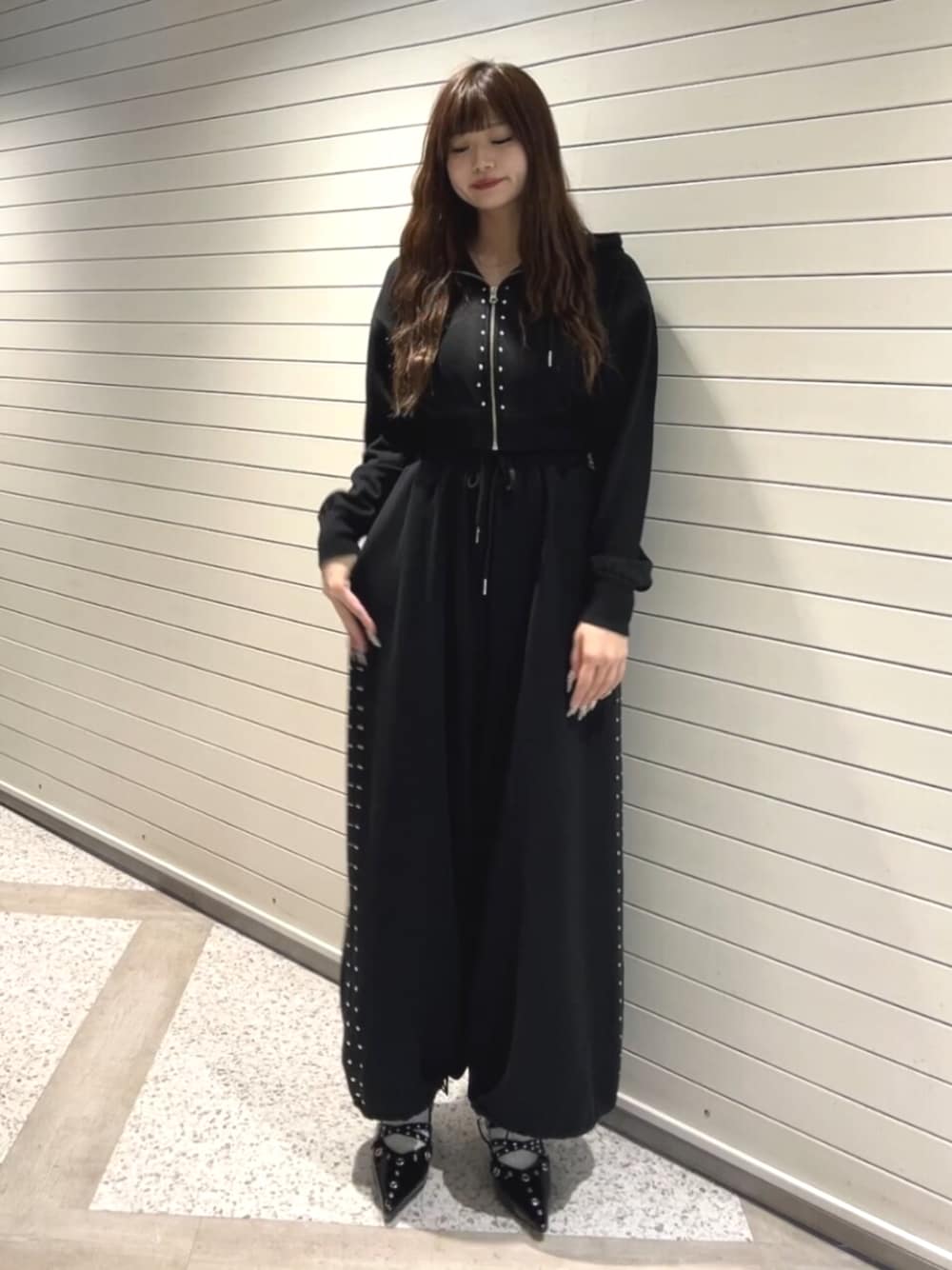⭐︎トップス ヴィンテージ感あるデザインとスタッズがjouetieらしく可愛い。ウエスト部分もゴムになっています。 ⭐︎ボトム メンズライクなゆったりシルエット。 ハイウエストで着用できる為脚長効果も◎ 裾はドローコードつき◎ ⭐︎シューズ 25cmでLサイズ着用。