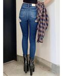 【トップス】 バックレースアップが女性らしく、編地も変形柄になっているのでシンプル過ぎずデザイン性の高いトップスです💞 身長167cmでハイウエストのパンツで合わせてお腹が隠れるか隠れないかくらいの丈感でした📏👀 【デニム】 前から見るとノーダメージのデザインですが、バックスタイルが左右共にダメージが施してあり、前後のデザインのギャップが可愛いデニムです👖✨ 【シューズ】 GYDAで定番のポインテッドミュール👠 高さも歩きやすく美脚効果のあるデザインになっており、カジュアルにも綺麗めにもどんなコーデにも合わせやすいです◎