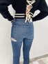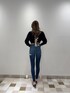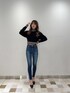 【トップス】 バックレースアップが女性らしく、編地も変形柄になっているのでシンプル過ぎずデザイン性の高いトップスです💞 身長167cmでハイウエストのパンツで合わせてお腹が隠れるか隠れないかくらいの丈感でした📏👀 【デニム】 前から見るとノーダメージのデザインですが、バックスタイルが左右共にダメージが施してあり、前後のデザインのギャップが可愛いデニムです👖✨ 【シューズ】 GYDAで定番のポインテッドミュール👠 高さも歩きやすく美脚効果のあるデザインになっており、カジュアルにも綺麗めにもどんなコーデにも合わせやすいです◎