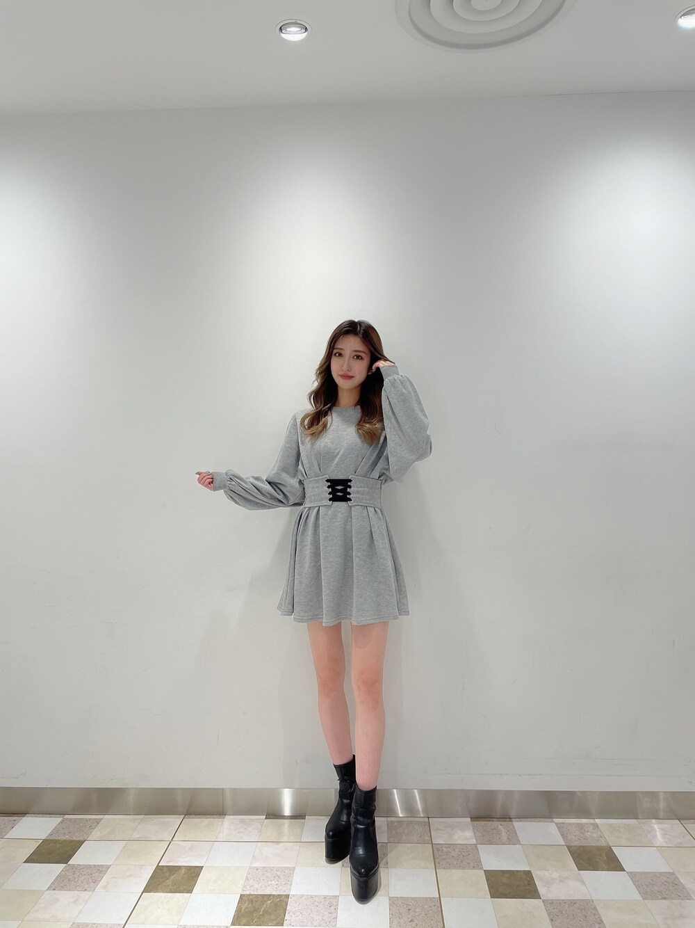 【ワンピース】 フレアの形がかわいいワンピース💖 コルセット部分が胸下にデザインされているので脚長効果抜群❣😳 167cmの私でもお尻が隠れる長さです✨ 中はショートパンツを履いてます😌 【ブーツ】 12.5cmでヒール高めですが、高低差があまりないので歩きやすく、疲れにくいです✨