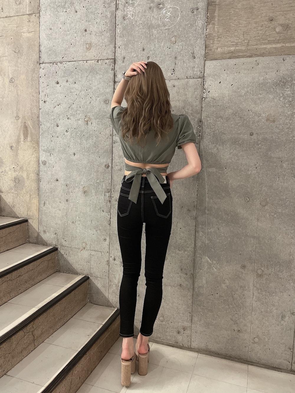 【トップス】 バックリボンがGYDAらしいトップス♡ 袖のデザインがキャンディースリーブなので、二の腕カバーしながらおしゃれに着ていただけます✨ スクエアーネックでデコルテがスッキリと綺麗に見えるのもポイントです◎ 【デニム】 GYDAで定番のハイウエストのワンウォッシュのパンツ♡ かなりストレッチせいがきいてるので履き心地が良く、内側にステッチが入ってるので美脚効果抜群です✨ 【サンダル】 ダブルストラップがポイントのコルクサンダル👡🤍 高低差が少ないので安心して履いていただけます!