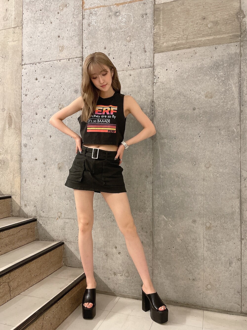 【トップス】 USED感のあるデザインのタンクトップ♡ レトロな雰囲気のグラフィックでカラフルなプリントが施されているのがポイントです! 丈感もおへそが少し出るくらいの丈感でデニム合わせでも可愛いです💖 【スカート】 トレンドのカーゴパンツデザインのスカート♡ ローライズのデザインでおへそが見えます👀💕 ベルトで調節も可能です◎ 【サンダル】 履きやすさ抜群のチャンキーサンダル👡 ベーシックなデザインなのできれいめにもカジュアルにも◎ 太めのヒールと高低差が少ないのでとても歩きやすいです✨
