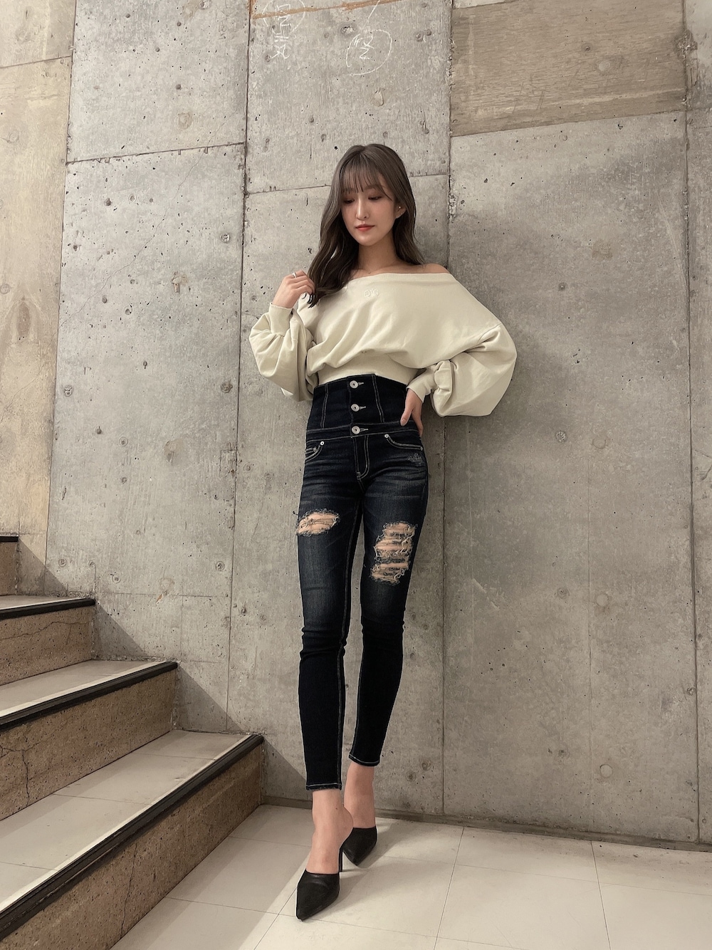 【トップス】 毎年人気のピグメント加工のオフショルトップス♡ 今期はSymmetryGYDAのロゴが同色で刺繍されています☺︎ Vネックとオフショルとしても着用できて、デコルテがきれいに見えます◎ 【デニム】 後ろのポケットのレースアップデザインがポイントのダメージデニム♡ ハイウエストなのでショート丈トップス合わせがスタイルアップするのでおすすめです☺︎ 【ミュール】 シンプルなデザインなので、カジュアルにも綺麗めのコーデにも合わせやすいミュールです◎