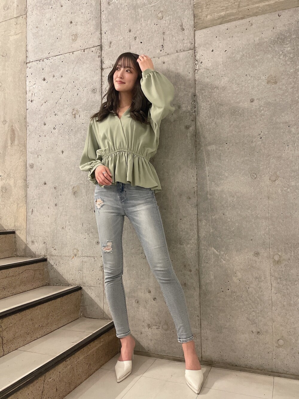 mai(GYDA)のシャツ/ブラウス「カシュクールペプラムブラウス」を使ったコーディネート