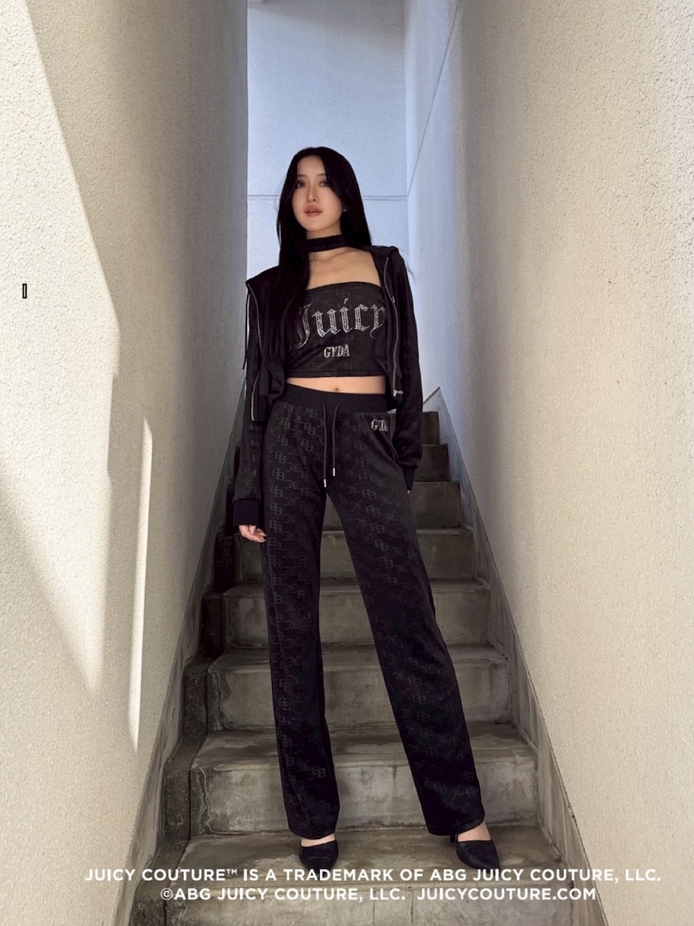 mai(GYDA)のスウェットパンツ「GYDA×Juicy Couture GG JC Emboss Big Bling Velour Track Pants」を使ったコーディネート