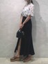 トップスは前後2wayで使える万能なブラウス🌸 シフォン素材が柔らかく、袖口にボリュームがあるタイプなので、パワショルが苦手な骨格ストレートの私でもスッキリ着れました💖 スカートは深めのスリットがポイントのデニムスカート! ストレッチがしっかりと効いているので着やすく、マーメイドラインでスタイルアップ効果抜群です🌟 裾の切りっぱなしデザインもおしゃれでかわいいです!