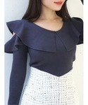 毎年大人気🌟アライドダウン使用のウォッシャブルショートダウン! 今年はライダースのように打合せがダブルになったデザインが新しいポイントです! ショート丈で着回し力抜群のアイテムです🎶 合わせたのはオリジナルの総刺繍を施した贅沢なスカート✨ ベルト切替えのないすっきりとしたハイウエストデザインなので、腰の位置が高く見え、スタイルアップ効果も🙆♀️ トップスは定番とも言えるラッフルニット♡ 身体にすっきりとフィットするリブに、品のあるキレイ見えなラッフル衿が印象のニットです! 袖からチラッと見える肌見せデザインが女性らしさを演出してくれます🤭 前後2WAY仕様で、さらにはオフショルダーでも着られる万能アイテムです!