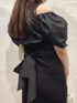 レイヤードしたようなデザインで一枚で特別感のあるドッキングワンピース🥰 ブラウスの肩にはゴムが入っているので、オフショルでも着られ、肩をちらっと見せる着こなしもかわいいです🩷✨ 袖にはふわっとボリュームがあるので、ナローシルエットとのメリハリが生まれ、スタイルアップして見えます! 後ろで大きなリボンを作ってバックスタイルも可愛く着こなせます🎀