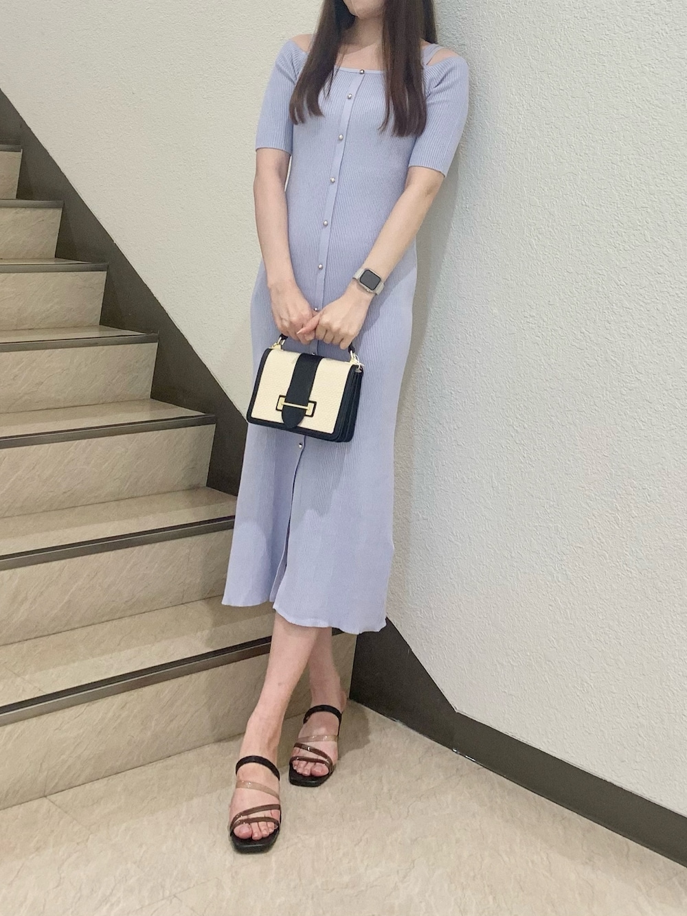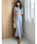 一枚でこなれ感!大人レディなニットワンピース🎀 肩部分のストラップと開きすぎていないネックラインがデコルテを華奢に見せてくれ、広がりすぎないマーメイドシルエットが上品です! 前開きのデザインはフェイクなので安心して着ていただけます🥹✨