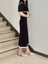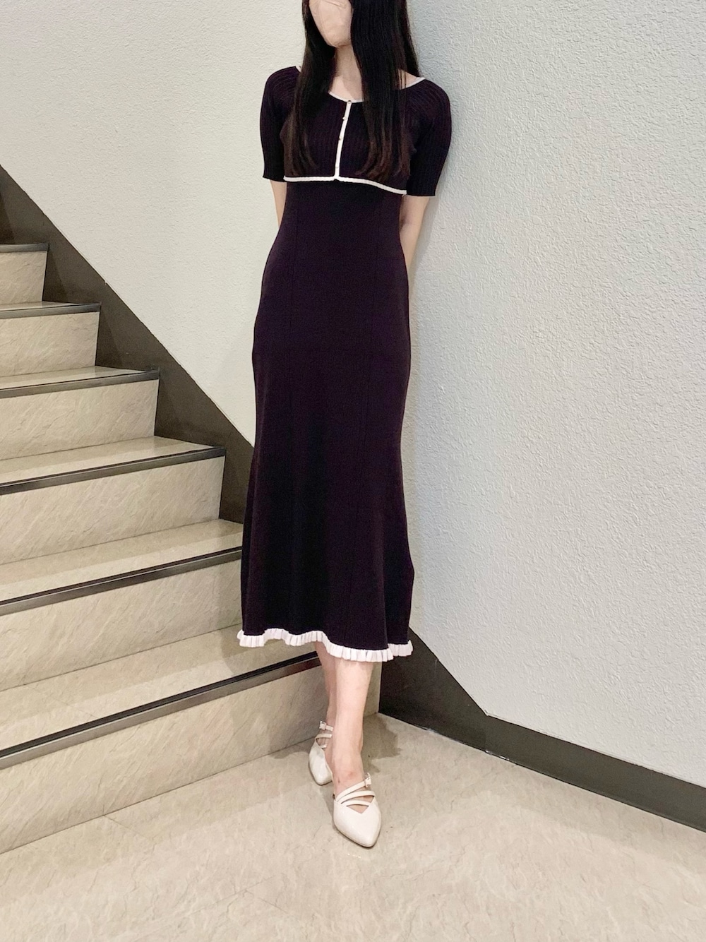 クロップド丈のトップスとニットキャミワンピースがセットになったアイテム! コンパクトな丈感のトップスは、襟周りが広めでデコルテが出るので華奢みえします! 裾のバイカラーフリルデザインもかわいい🤍 リブ編みのゆったりしたニットです!裾に向かって広がるマーメードシルエットで腰回りもスッキリ着れました🎶 163cm、Sサイズ着用で足首上15cmくらいです! 秋に大活躍のミュールはヒールが高すぎずデイリー使いしやすいです!24.5cm、38サイズ着用で踵ぴったりでした!