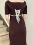 NAMI(MERCURYDUO)のワンピース「バイカラーバックレースアップニットワンピース」を使ったコーディネート