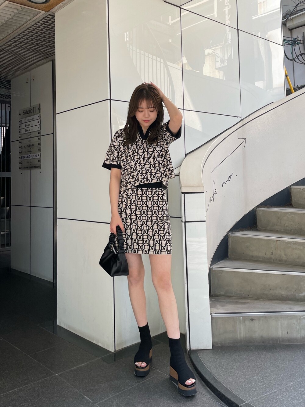 松井みゆ(MURUA)のポロシャツ「モノグラムニットポロシャツ」を使ったコーディネート