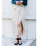 ▷夏のきれいめコーデ 【tops】程よい肌見せがムルーアらしいヘルシーなトップス❤︎アシンメトリーにカットされた肩と首元がポイントでデコルテ部分を綺麗に見せてくれます◎【bottom】ムルーア大人気のラップスカート❤︎スリットが入っているので程よい肌見せで抜け感を出してくれます!普段ミニスカートを履かない方でも挑戦しやすいです◎165cmでSサイズ着用しております。 【shoes】華奢なデザインで女性らしい足元に仕上げてくれます❤︎太めのヒールなので安定感抜群です◎