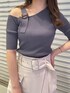 松井みゆ(MURUA)のニット/セーター「カッティングハーフスリーブニット」を使ったコーディネート