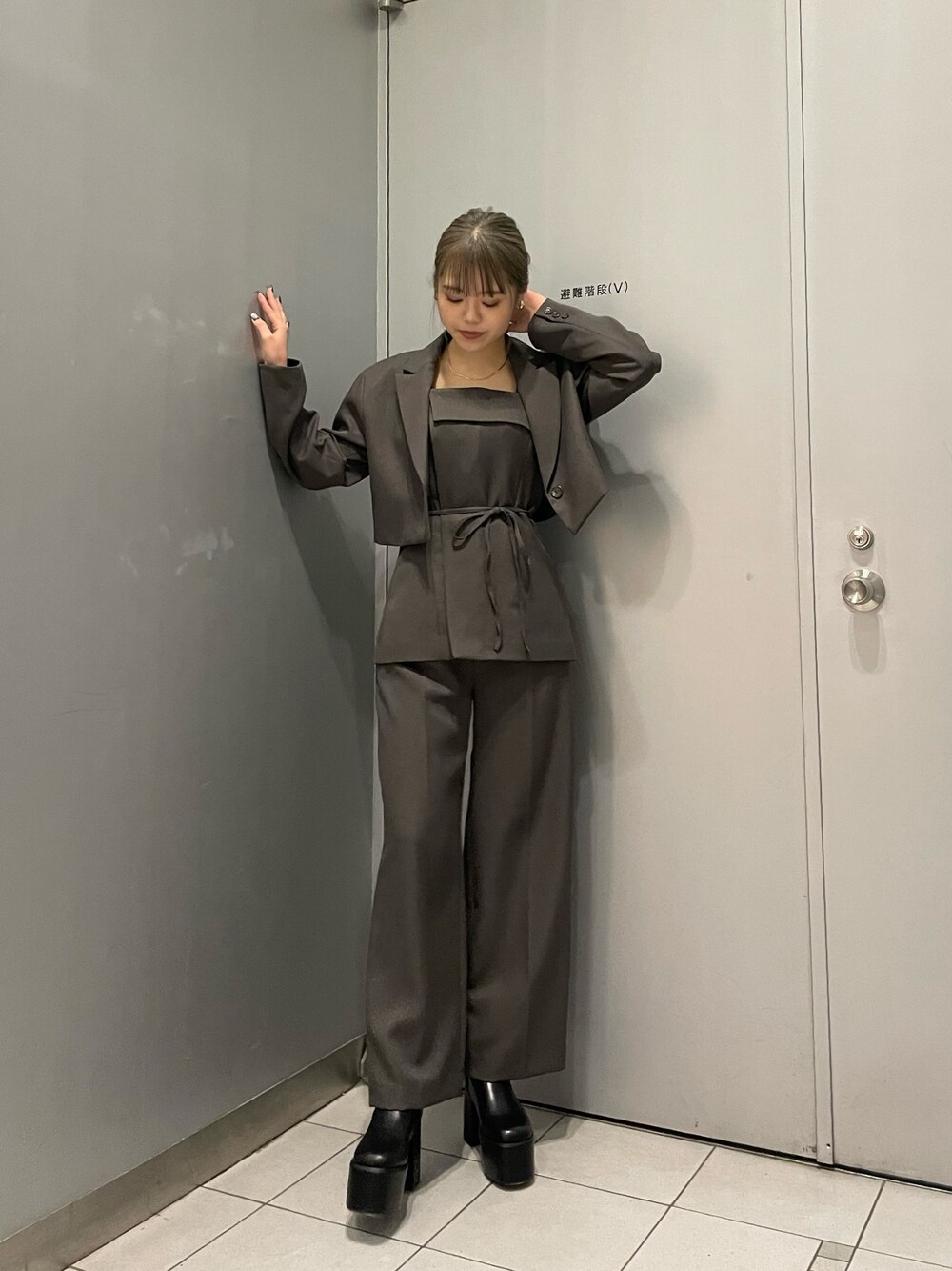 ▷春のキレイめセットアップコーデ 【jacket】今期トレンドのクロップト丈ジャケット❤︎サラッとした生地なので軽くて着心地抜群です◎ 【tops】ジャケットと同素材のビスチェ❤︎ウエストの細ベルトがウエスト位置を高く見せてくれるのでスタイルアップを叶えてくれます!そのまま着ても中にトップス合わせても◎ 【bottom】こちらもジャケットと同素材なのでセットアップとしても着用可能です❤︎ワイドシルエットなので気になる腰周りなどカバーしてれます!ハイウエストなので脚長効果も◎165cmでSサイズ着用しております。 【shoes】スタイルアップブーツ❤︎ヒールの高さが10.6cmあるので脚長効果抜群!ヒールの高さはありますがプラットフォームデザインなので安定感もあり、見た目以上に軽量なので疲れにくいのもポイントです◎