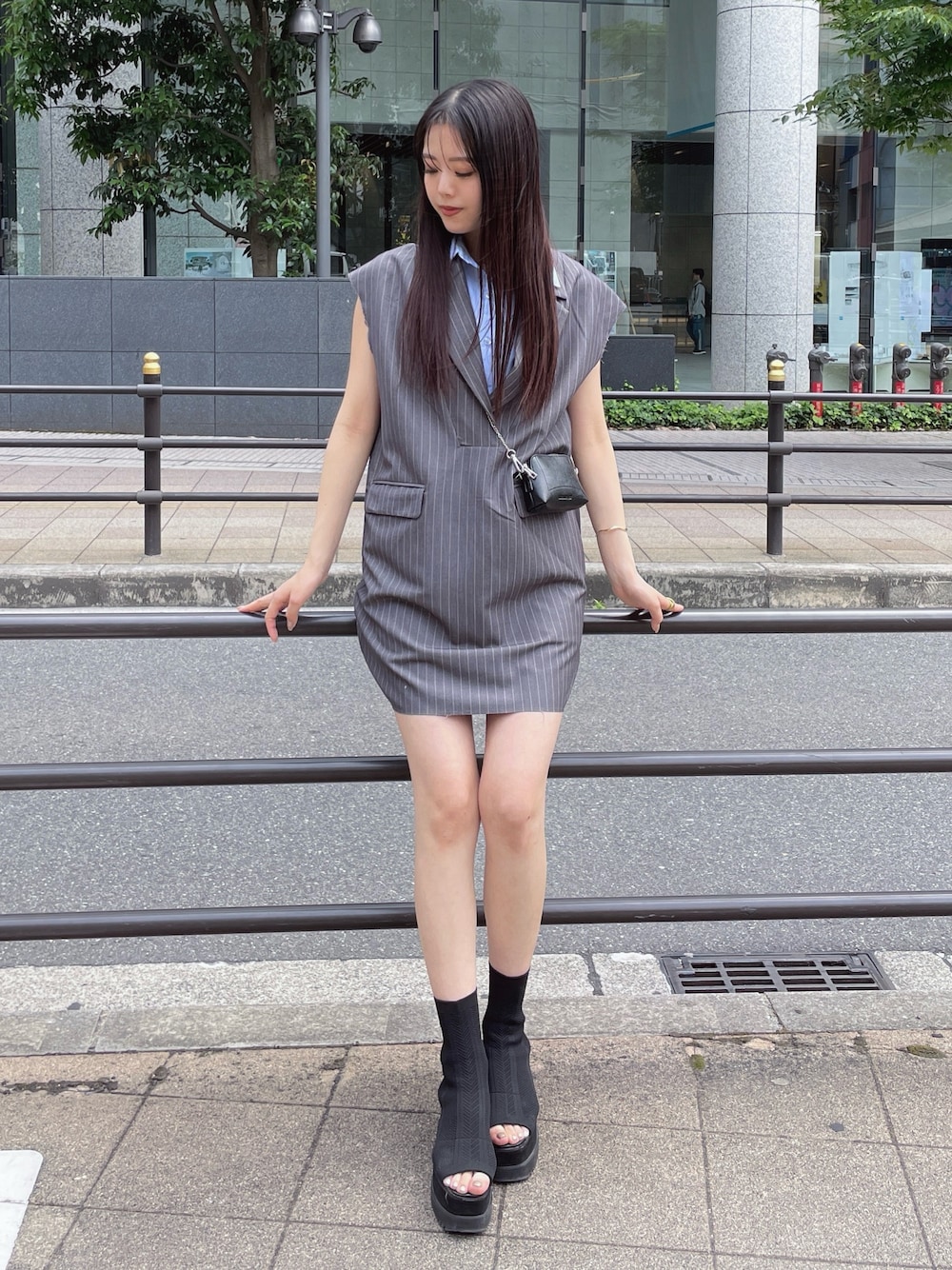 【one-piece】シャツをレイヤードしたミニワンピース❤︎ワンピースとシャツは取り外し可能なので他のインナーでも着回しして頂けます!ミニ丈が苦手な方はボトムス合わせでも可愛いです◎ 【shoes】厚底ソールで美脚サンダル❤︎ヒールの高さが10.7cmありますが、ウェッジソールでストラップが付いている為、履き心地抜群です!パンツやスカート両方にマッチします◎ 普段23.5cm〜24cm履いてますが23.5cmでピッタリでした!