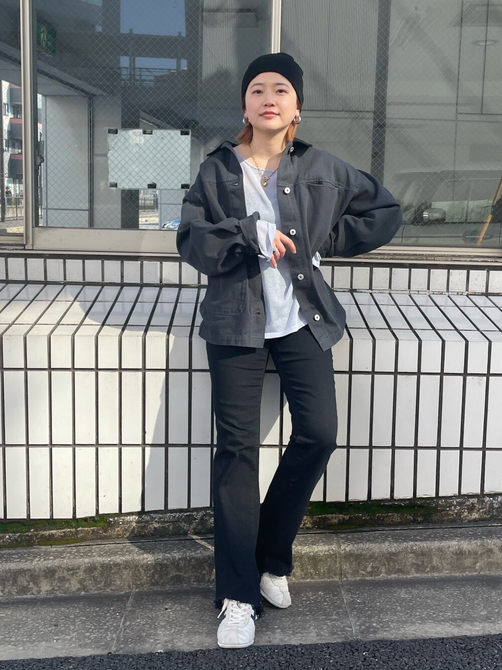 ブラックコーデ🐦⬛ 【トップス】 メンズっぽさから覗くレディらしさが最近ツボ🫣! お尻下まであってスケスケすぎないから大人でも着やすい🫶 【ジャケット】 愛してやまないカバーオール🐦⬛柔らかさもありつつ古着感出せる1枚!流行り廃りなく使いやすい! 【デニム】 久々のストレッチ素材がやみつき😶🌫️楽して綺麗が合言葉💓パツパツしすぎないストレートチックなブーツカットイメージが1番しっくりきます😊