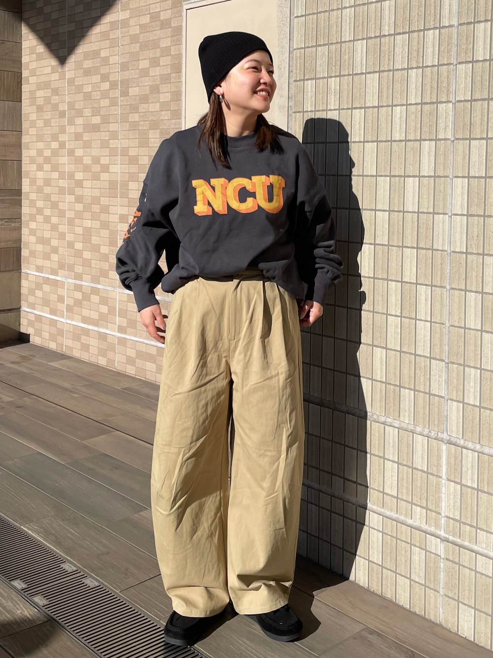 【スウェット】 安心感の塊❣️お尻下まであるスウェットの使いやすさは他にない!!このゆるっとシルエットも計算されててこのスウェット着るだけで決まるitem❤️🔥リブもしっかりしててこれからの時期腕まで上げても落ちて来ないし損なしスウェット😏! 【パンツ】 スラックスでは出せないこのボリューム感😎+足長効果抜群🍟!軽くて履いたら虜になるやつ🥹!この春おさえておきたい1本❤️🔥 【ニット帽】 毎度お馴染みニット帽🖤これがあるだけでこなれ感半端ない❣️コーデにメリハリつくし私の大好きなスウェットも小物のお陰でおしゃれに見えてるのは百も承知🫣!