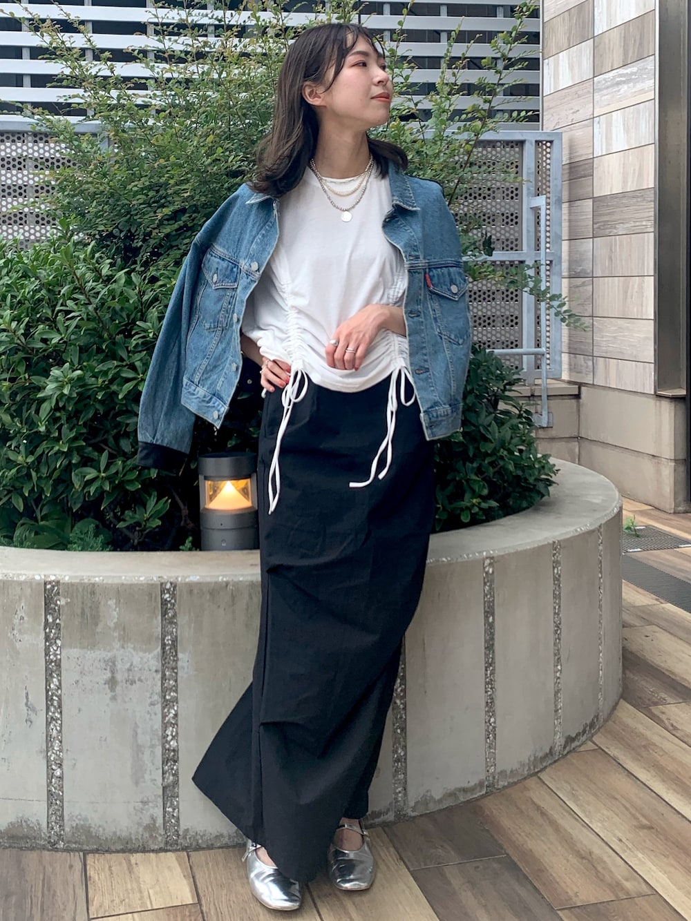 🖤ちょっぴりモードなレディカジュアル🖤 柄は使わずに素材と形で遊んだ大人の個性派コーデです❣️シンプルながらもシルエットが特徴的なTeeとスカートを合わせて個性が光るコーデに…♡ アウターもレザー素材がドッキングになったヒトクセあるデニムジャケットですが、全体的に上半身はスッキリめの丈感で揃えているのでガチャガチャしすぎずにまとまります💡丈はすっきりめですがアームホール広めなので中も意外と着込みやすいです😻 Tシャツのギャザー部分は絞り具合で丈感を変えられるのでショート丈気になるけど初めてで不安な方も挑戦しやすいですよ😌 スカートは161㎝Mサイズ着用してみました! ウエスト周りが少しゆるめな印象で私はくるくるスカートが回ってしまいました😂普段ウエストぶかぶかになりがちな方はSサイズの方がいいかもしれません🥹