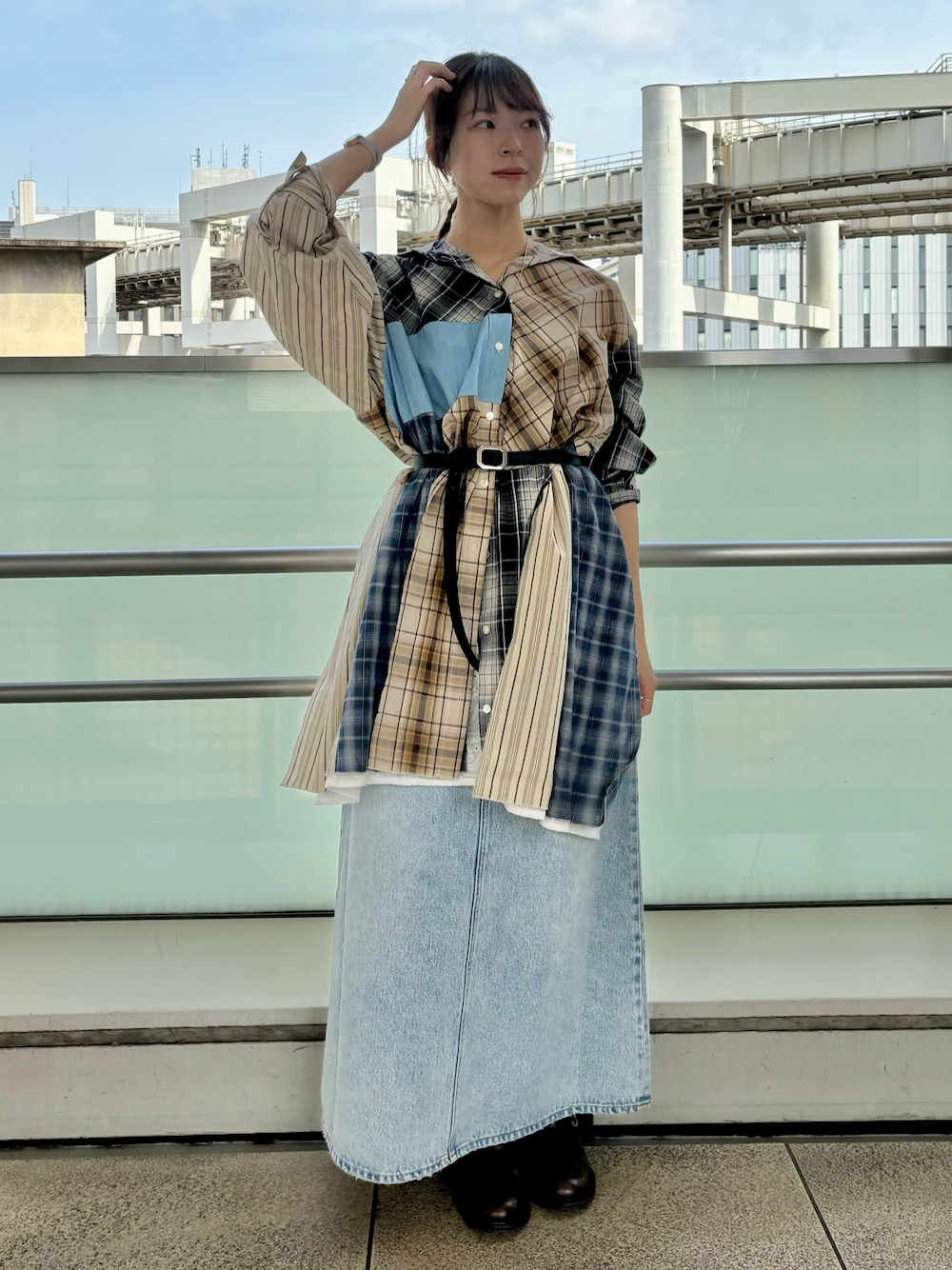 森理沙(Ungrid)のシャツ/ブラウス「ビッグシルエットリメイクチェックシャツ」を使ったコーディネート