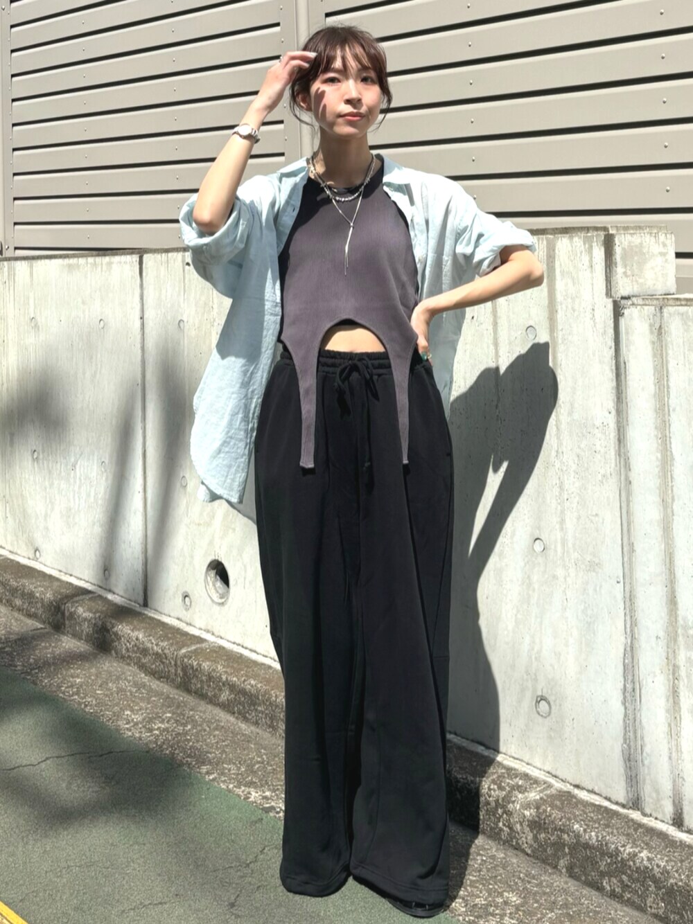 *shirt 毎年大人気!色違いで持っているスタッフも多いです🖐️ 綿と麻のサラッとした着心地なので梅雨入り後のジメジメした季節もベタつかず快適にお過ごしいただけます😽☔️また薄くて軽いので暑い夏の日除けにももってこいです🌞お尻がすっぽり隠れる丈でどんなボトムスとも相性◎ *inner シャツ×タンクは夏の定番コーデ☀️間違いない組み合わせですが少しマンネリしてきた…という方にオススメしたいのがこちらのグラデーションデザインのタンク!さりげないグラデーションと裾が垂れ下がるデザインがひと癖あって一枚でもおしゃれに仕上げてくれます🎶ガッツリすぎない肌見せもヘルシーでかわいい🌞 *pants 裾には絞りが付いてるのでワイドと絞ったシルエットとお好みで楽しめます💕トレンドのカーブデザインを落とし込んでいてウエストにもタックが入っているのでパジャマ見えもしづらいです🥹ウエストは紐で調整できるので身長問わずに履いて頂きやすいです✨ *sandal 足の甲と足首が支えられるので安定感抜群で長時間履いても疲れません🥹👏🏻 カジュアルにもレディにも合わせやすいデザイン💖23.5㎝で Mサイズ着用です!