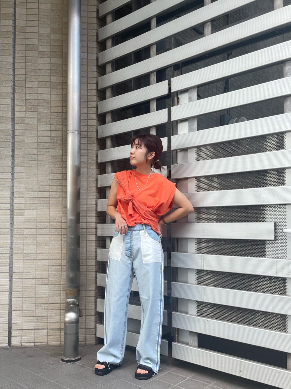 中島佑芽(Ungrid)のTシャツ/カットソー「ショルダータックカラータンクトップ」を使ったコーディネート