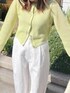 【tops】 メッシュカーディガンなので、インナー次第で春から晩夏まで大活躍🤞 色も春らしいグリーンがコーデの主役に💚🍏 丈も短すぎないので合わせやすいです。 【bottom】 リネンパンツ!しっかり裏地も着いてるのでチクチク感は無いのはもちろんの事、 透け感もなく安心して着ていただけます😌