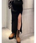 yuunaのスカート「【セットアップ着用可】DEEPスリット ニットロングスカートライクショートパンツ」を使ったコーディネート