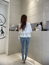 カシュクールペプラムブラウス⸜♡⸝ アンダー部分に細ゴムを入れ、ウエストシェイプ効果・裾のペプラムのボリュームをきれいに見せてくれるデザインで、 胸元のレディーライクなカシュクールシルエットも◎ 【生地感】クタっとしたとろみのある生地感です 【サイズ感】ゆったりした着用感で落ち感のあるサイズです。 bottoms 横ラインにGYDAロゴが入っており 薄い色味なので春らしいジーンズ!