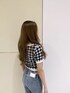 カジュアルガーリー おんなのこらしいチェックのデザインで春夏らしい一枚です!生地感は肌触りふわっとしていてニット生地です! スカート併合わせもかわいい♡