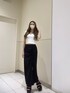 カジュアルコーデ トップスはGYDAのロゴが入ったショート丈なのでパンツ合わせでもかわいい♡ スカートはスリットが入っておりクシュっとデザインありカジュアルめで生地感が本当にサラッサラです!!