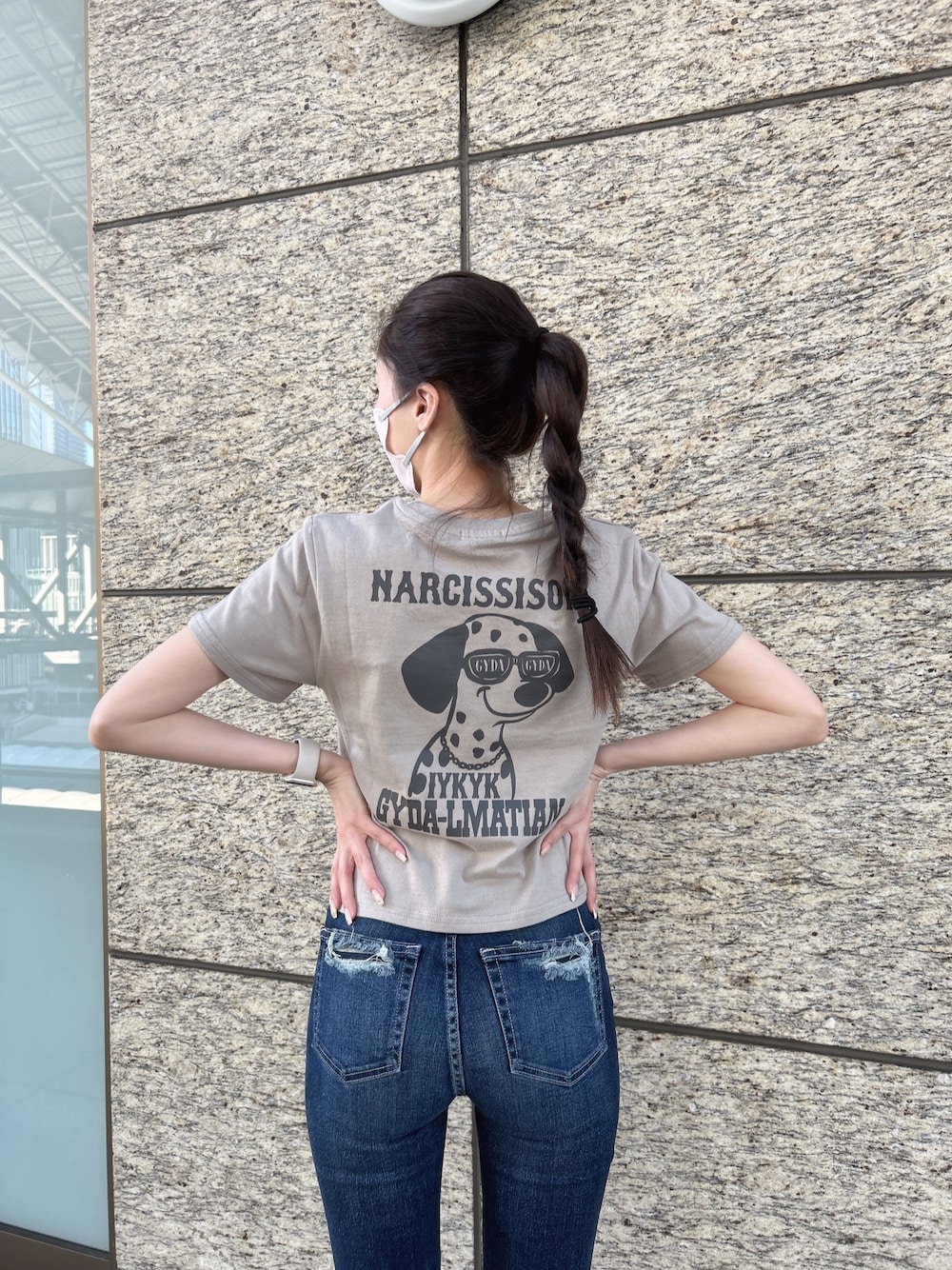 大人気のダルメシアンTシャツ🐶♡ どの体型の方でも着やすく、長すぎず短すぎの使いやすい1枚です! 色味3色御座います! このパンツはほんとに細見えすぎる! ダメージ感も〇 おすすめ是非着てみてください^^