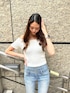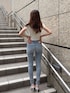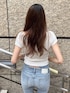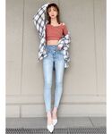 yuunaのデニムパンツ「ハイウエストウエストクロススキニーデニムパンツ」を使ったコーディネート