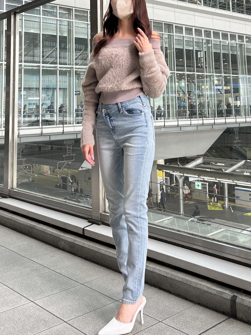 綺麗めカジュアルコーデ♡ 〜トップス〜 流行りのシャギー素材で暖かくオフショルで女性らしさ満点のトップスです! ウエスト部分のレースデザインが前後で着用して頂けるので気分で変えれちゃいます! 〜パンツ〜 ウエスト部分のデザインが珍しくこのパンツ1枚でオシャレになれます♡ 〜ミュール〜 シンプルなデザインでどの服装にも合わせやすく先が尖っているのでとても綺麗に見せてくれます♡