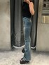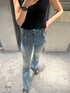 [デニム]擦れたようなハイライトデザインとトレンドのアウトポケットデザインが目を引く足長効果抜群デニムです♡♡ クロップド丈のトップスに厚底サンダルを合わせたEMODAコーデがオススメです♡♡