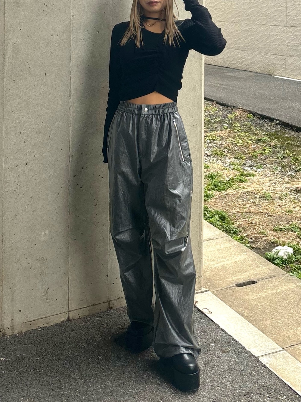 〈トップス〉 ギャザーデザインで左右非対称になっており1枚で着てもアウターのインナーとして着ても可愛いデザインのニット🧶タイトすぎず着やすい素材感です! 〈パンツ〉 ゆったりとしたナイロンパンツです✨️膝にタックが入っていて立体的なシルエットと光沢感ある素材がカジュアルすぎない印象にしてくれます💖後ろ裾のリボンもポイント🎀154センチでSサイズ着用しております! 〈ブーツ〉 ラウンドトゥが女性らしい印象のブーツです🖤ヒールが約11センチで脚を長く綺麗に見せてくれますが、なおかつ傾斜もないので長時間歩いても疲れにくいです!23.5センチでMサイズ着用しております🦶🏻
