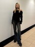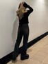 【トップス】 シアーベロア素材で光沢感のある生地が女性らしいトップス💞短すぎない着丈で、デニムでもスカートでも合わせやすいデザインです🪄 【デニム】 ウエストとヒップの程よいフィット感とワイドフレアのシルエットがおしゃれで細見え効果抜群のシンプルなデニムです🖤身長154cmで24インチ着用しております! 【シューズ】 エッジの効いたモードなデザインのブーツ💖シャープなシルエットでどんなスタイリングにも合わせやすく、アンクルなので1年を通して履いていただけます✨️23.5cmで36サイズ着用です!