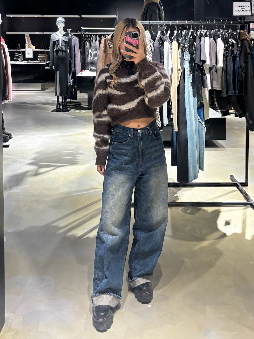 本田祐美絵(EMODA)のニット/セーター「アートゼブラカラーニット」を使ったコーディネート