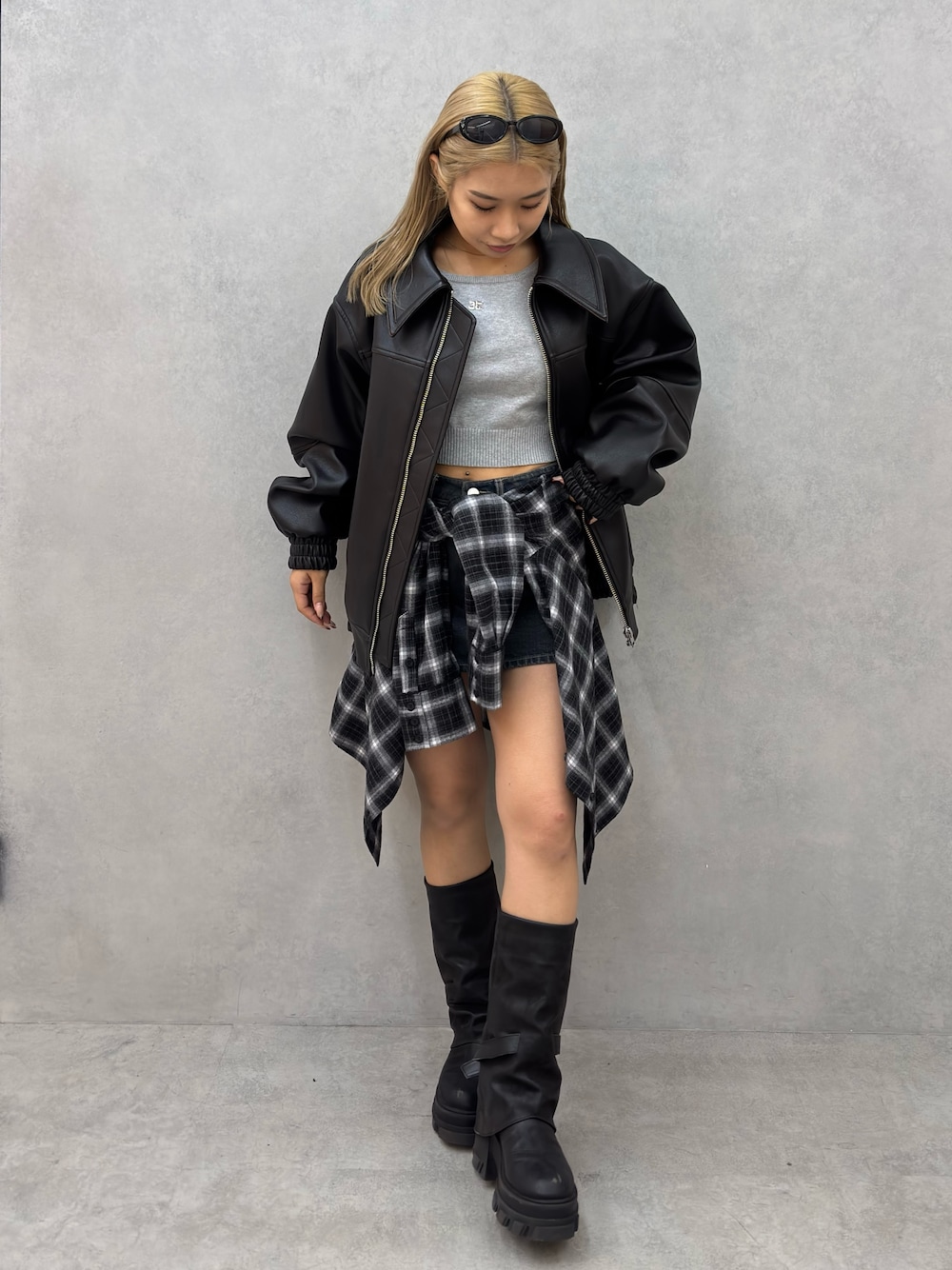 【アウター】 身幅や袖周りにゆとりがあるので冬は厚手のニット、春はTシャツなどを合わせて長くご着用いただけます🫶🏼大きな襟で小顔効果も抜群です💖 【トップス】 広めのネックでデコルテを綺麗に見せてくれます💞シンプルで使いやすく、裾にはリブが入ってるのでウエストがキュッと見えスタイルアップ効果もあります✨️ 【シャツ】 さりげないレースデザインがポイントのチェックシャツ🖤腰に巻いてコーデのポイントにするのもオススメです🫶🏼 【スカート】 ベーシックなボックスシルエットのデニムスカートです💞どんなスタイリングにも合わせやすく着回し力抜群⭕️身長154cmでSサイズ着用です! 【ブーツ】 トレンドのカバーブーツ✨️約8.5cmの厚底ですが傾斜が少なく安定して歩きやすいです🚶♀️ふくらはぎの太い部分を隠す丈感なので脚を細く見せてくれます💞23.5センチでMサイズ着用しております!