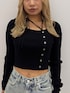 【トップス】 チョーカー付きなので1枚で着ても映えるアイテム‼️程よいフィット感で華奢見えさせてくれます💖左肩を落としてワンショル風にすることでモードな着こなしもできます✨️ 【デニム】 大胆なクラッシュデザインが目を引くワイドデニム💖ズルっとしたシルエットなので、あえて女性らしいトップスと合わせでモードな着こなしがオススメです✨️身長154センチでSサイズ着用です! 【スニーカー】 ボリュームのあるエアソールが長めのパンツでもミニスカート合わせでも存在感のある足元にしてくれます✨️約9センチのソールですが傾斜がなく、とても軽いのでたくさん歩いても疲れにくい設計になっています⭕️23.5センチでMサイズ着用です!