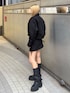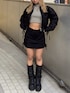 【アウター】 ゆったりとしたサイズ感で中に着込むこともできます🉑バックレースアップデザインなので、後ろ姿が映えるアウターです💞 【トップス】 コンパクトで1枚でもインナーでも使えちゃう万能なハイネックニット✨️ショート丈なのでハイウエストボトムとの相性バツグンです⭕️ 【スカート】 モードなボックスシルエットでベロアのレースアップリボンがポイントのスカートです🎀セットアップはもちろん単品使いもしやすいアイテムです✨️身長154cmでSサイズ着用です! 【ブーツ】 トレンドのカバーブーツ✨️約8.5cmの厚底ですが傾斜が少なく安定して歩きやすいです🚶♀️ふくらはぎの太い部分を隠す丈感なので脚を細く見せてくれます💞23.5センチでMサイズ着用しております!
