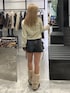 【トップス】 程よくゆとりがあるシルエットで華奢見えするレイヤード風トップス✨️レイヤードフレアスカートとのセットアップ着用はもちろん、デニムやスカートとの相性も良く、使いやすい1枚です💞 【ショートパンツ】 ラップスカートのようなフロントデザインが可愛いショートパンツ🖤Aラインなので脚が綺麗に見えます✨️アウトポケットなどデザイン性があるのでシンプルなスタイリングのポイントにもなります⭕️身長154cmでSサイズ着用です! 【ブーツ】 履くだけでトレンド感のあるスタイリングにしてくれる今季注目ブーツ💞約10センチのタンクソールが脚を長くみせてくれます✨️傾斜は緩やかなので歩きやすいです👍🏽23.5センチでMサイズ着用です!