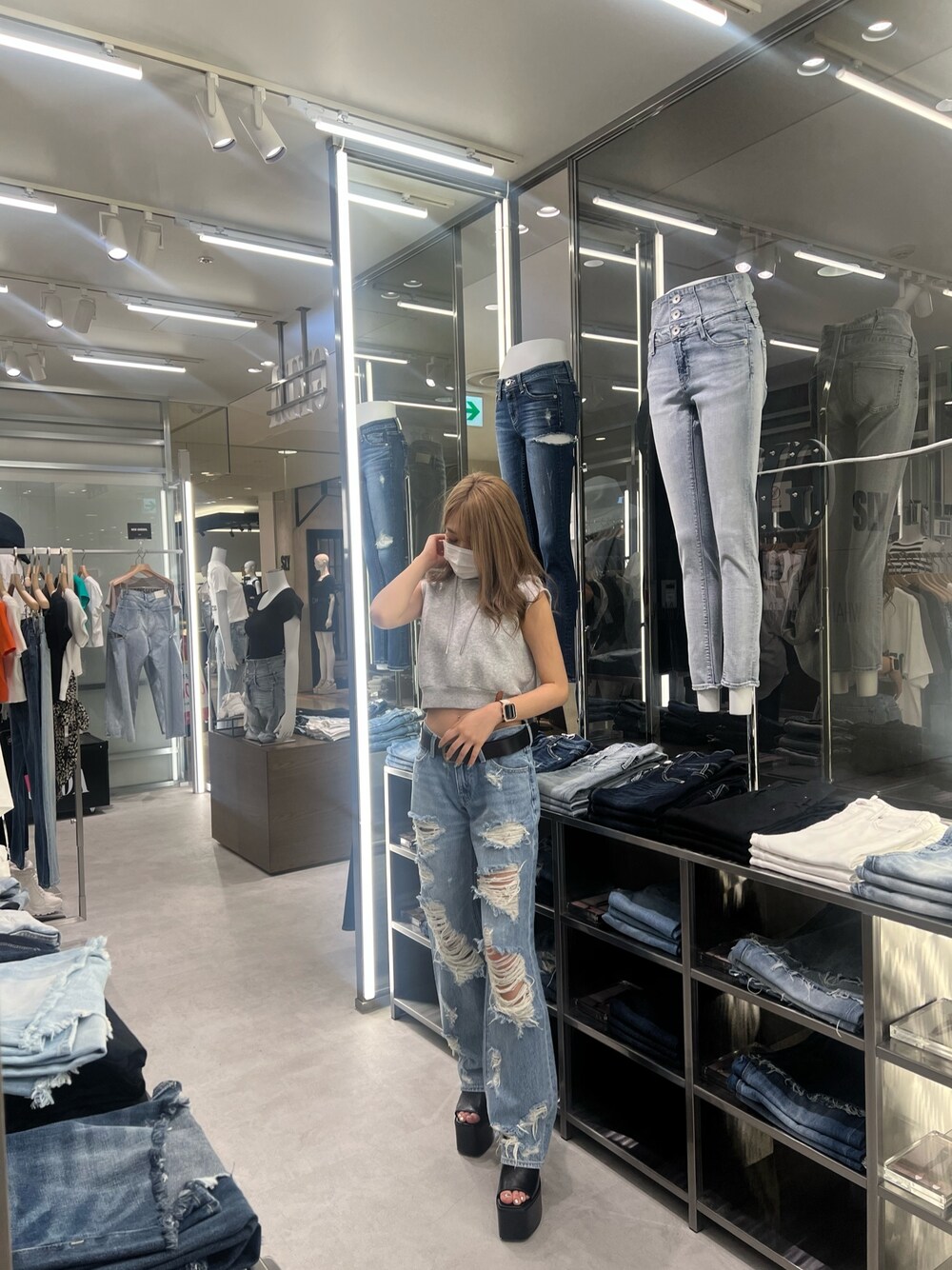 夏のカジュアルコーデ🌞🌴 [トップス]新作のショートパーカーです!ポンチ素材なので夏でも涼しく着られる素材感となっております!お色味は3色展開でブラック、グレー、ホワイトです! [ボトムス]ダメージ加工が多めで足が長く見える位置にしっかりダメージが入っており拘ったデニムになってます🫣️🩵綿100%なので段々生地が柔らかくなりしっかり馴染んで味が出るデニムです! [シューズ]新作のチャンキーサンダルです!ヒールの高さが13cmとなっており脚長効果抜群なのに傾斜が少なくとても歩きやすいです!✨