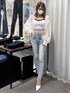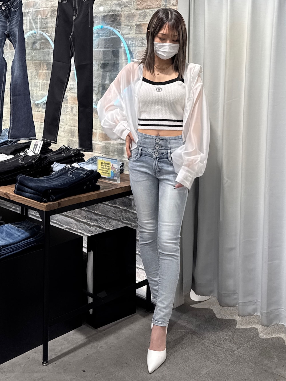 《トップス》パイル素材のビスチェです!パットが着いているのでお下着なしで着用して頂けます!✨️ 《シャツ》 透け感や光沢感が綺麗なシャツです!1枚あると日焼け対策にもなるので便利です!ビスチェ系に相性抜群です💖 《デニム》GYDA定番デザインのウエストがクロスしてるスキニーです!短いショート丈との相性抜群です!私は154cmでXSを着用しております! 《シューズ》GYDA定番のミュールです!ポインテッドデザインなので足先が綺麗に見えるデザインです!私は23.5cmでSサイズを着用しております🫶🏻✨️