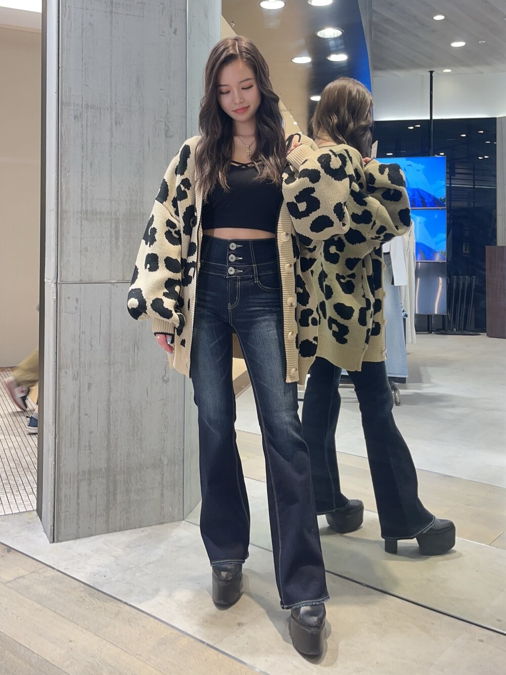 【OUTER】 軽めの羽織りとして活躍するカーディガン☝🏼💫ラメの入った生地になっていてとても可愛いです🤩💎 153cmでお尻が完全に隠れる丈感です! 【BOTTOM】 大人気バッククロスデザインのフレアデニムパンツ💙 153cmでXSを着用していますが、足の甲にかかるくらいの丈の長さで脚長効果もあります☝🏼💫 【SHOES】 安定で定番のショートブーツ👠🖤 ヒールが高く感じると思いますが、底も厚くなっておりますので高低差をあまり感じずに履いていただけます☝🏼✔️ 普段23.5cmの私はMサイズを着用しています!