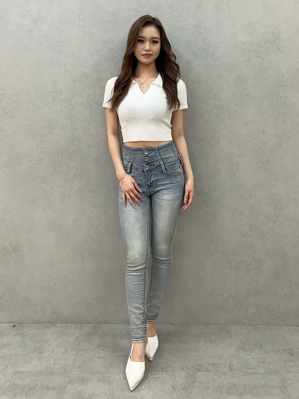 【TOPS】 シンプルだけど襟付きデザインになっていることにより、ポイントができてシンプル過ぎなくて良い🤩🤍 バックオープンがSEXYでGYDAらしいアイテムです🐰💫 【BOTTOM】 大人気ウエストクロスシリーズのスキニーです🩵ハイウエストになっていて腰周りを覆ってくれて、脚長効果も抜群の人気アイテムとなっております🫡‼️ 153cmでXSサイズを着用していてくるぶしにかかる長さです! 【SHOES】 大人気定番ミュールが厚底に💞 スタンダードなミュールよりも高低差がないため履きやすくなっています☺️👌🏼 普段23.5cmでミュールタイプのシューズはSサイズで着用しています!