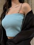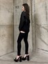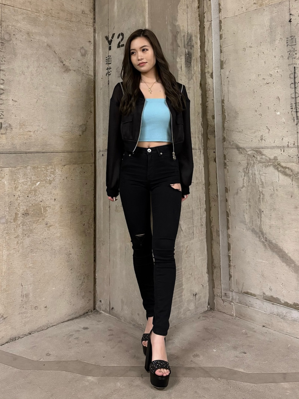 【OUTER】ブルゾンでシアー素材が珍しくて可愛く個性が出せます😍肩のファスナーを開けることもできます!裾が太めのリブで細見え効果もあり👌🏼 【TOPS】肩紐がチェーンになっているのがポイント⛓️💛チェーンは取り外しが可能になっており、カップ付きでインナーいりません✨153cmで丈感おへそより上なので短めです! 【BOTTOM】人気デザインのブラックスキニー🖤伸縮性バツグンでとても履き心地の良いパンツになっております!153cmでXSサイズ着用していて少しくるぶし隠れるほどの丈感です! 【SHOES】足の甲の部分にビジューが散りばめられており、キラキラ輝いてとても可愛いです💎✨少し高低差を感じるヒールの高さだとは思いますが足首のベルトで固定できます!普段23.5cmでMサイズを着用しています!