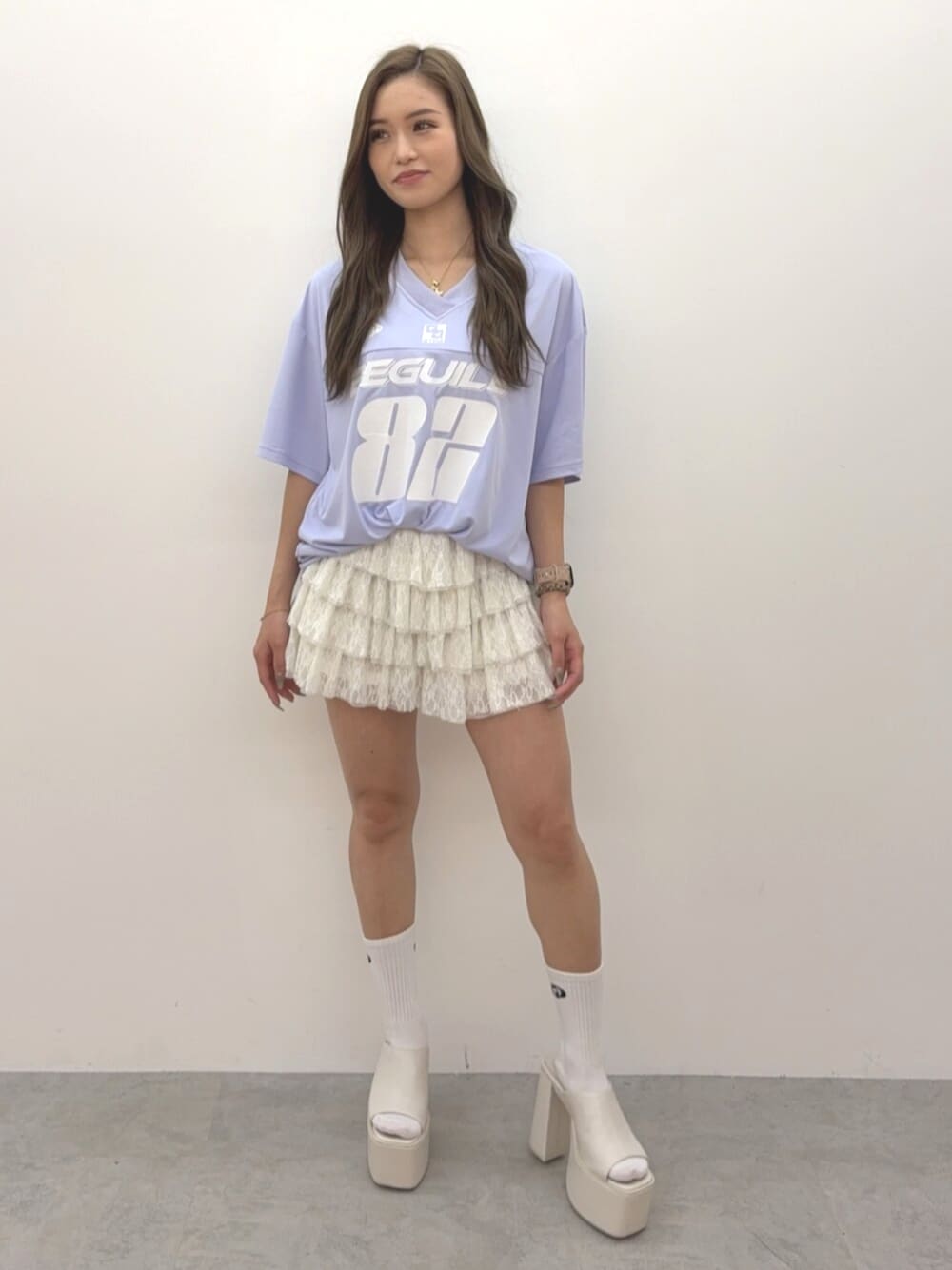 【TOPS】サラサラの生地感が着心地良すぎるTOPS💜スポーティなデザインがトレンド感✨153cmでヒップが完全に隠れる丈感です! 【BOTTOM】異素材がレイヤーされていてトレンド感のあるフリルデザインボトムス🪼︎︎︎︎ショートパンツのつくりになっているので安心です😘❤️🔥ウエストがゴムで履きやすいです! 【SOX】ロゴがポイントになっているSOX🧦💛コーデのプラスワンにオススメです☝🏼 【SHOES】BASICなデザインで使い回し抜群のチャンキーサンダル👡🤍高低差があまりなく疲れにくいのに脚が爆盛れします!普段23.5cmでSサイズ着用しています!
