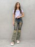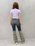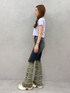 【TOPS】袖がリブになっていて少し変化のあるトップスで、配色にも拘りのある1枚です!153cmでおへそくらいの丈感で、長すぎず短すぎずちょうどイイ丈感です👌🏼 【BOTTOM】連なったフリンジが特徴的なフレアパンツ🤠🪇ヴィンテージ感のあるデザインが個性を出してくれます!ハイウエスト+フレアで脚長効果抜群☝🏼⤴️153cmでXSサイズ着用していてかかとまで長さあるので高さのあるシューズ必須です! 【SHOES】高低差のない厚底のサンダルで、着脱もしやすく疲れにくいです🫶🏼脚が細見えしてくれるのでスタイルアップできます🕺💖