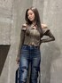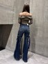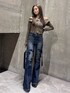 KURENA(GYDA)のデニムパンツ「ハイウエスト strap cargo designフレアデニムパンツ」を使ったコーディネート